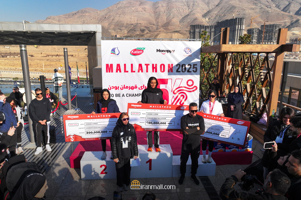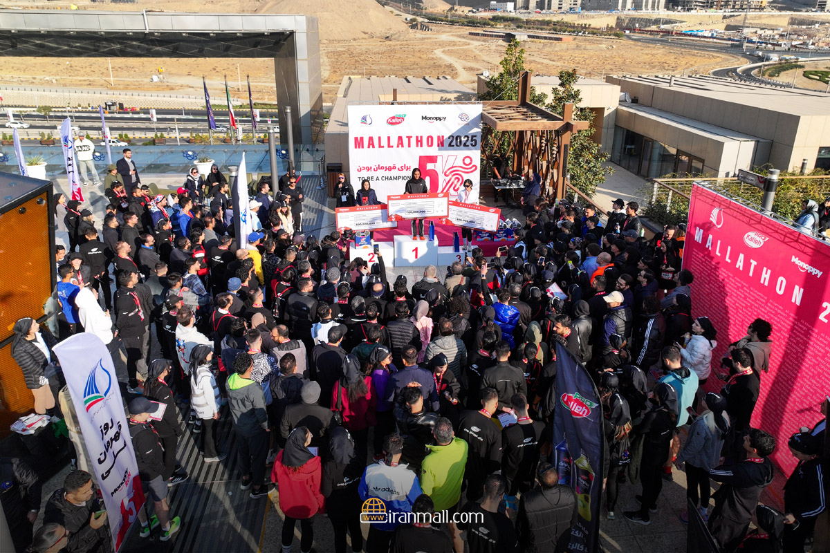 A five-kilometer malathon with prizes of two hundred million tomans sent 300 runners on a five-kilometer race course in Iranmall. The first Iranian marathon was held on Friday, November 21, 2025, with stations designed and precise markings along the route, and images of the runners' presence in Iranmall were widely reflected in the media.