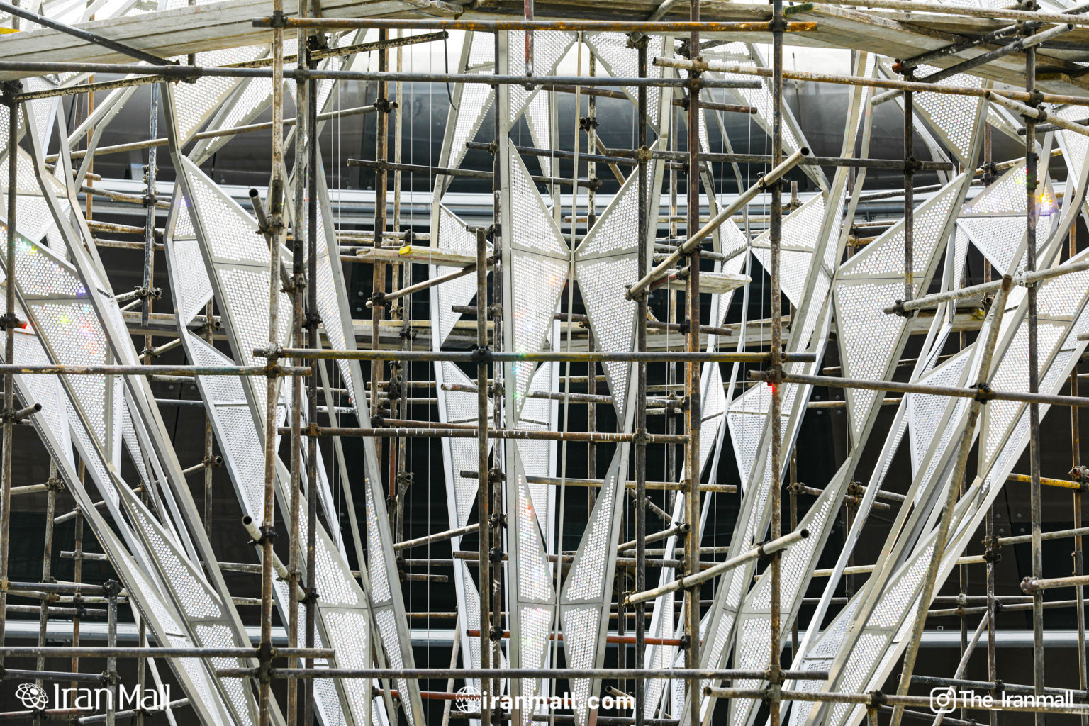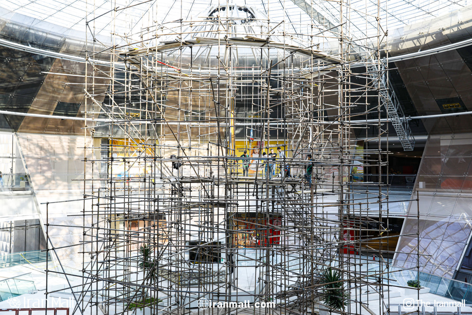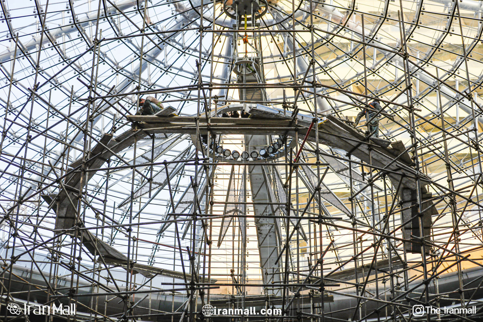 قادر سعادتی سرپرست کارگاه این شرکت در گفتگو با روابط عمومی ایرانمال با اشاره به فرایند نصب ۳ مرحلهای این نورافشان بزرگ اعلام کرد: این پروژه ابتدا با خرد و پخش کردن نورافشان بر روی زمین آغاز و سپس با نصب مرحلهای آن بر روی سقف پایان گرفت.