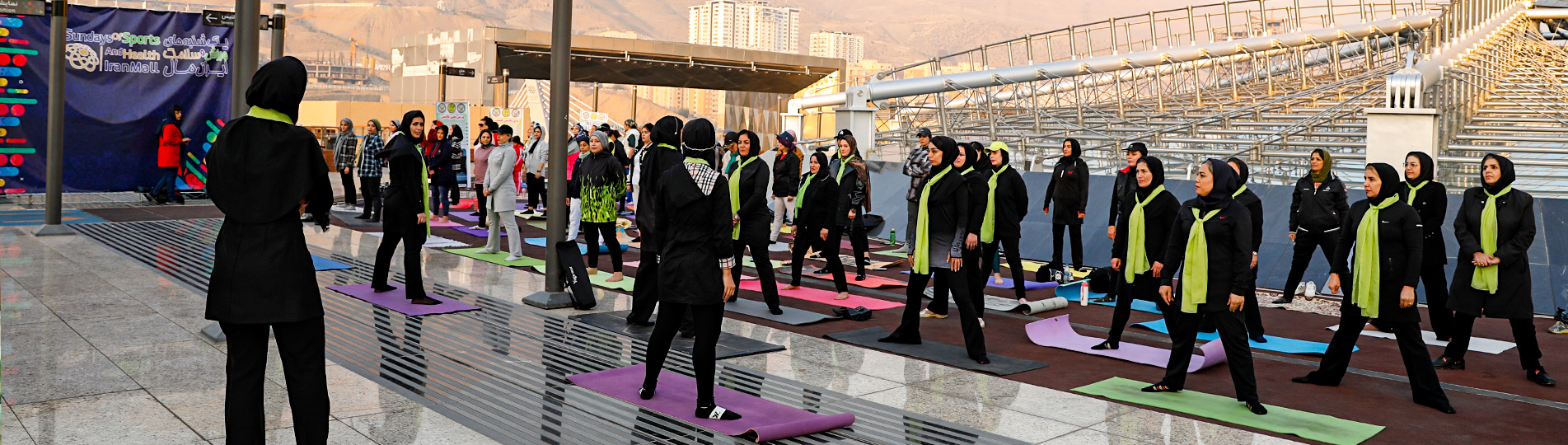 بانوان ورزشکار در رشته بادی بالانس در بام سبز ایرانمال حرکات این رشته را اجرا کردند. بادی بالانس ترکیبی از ایروبیک، یوگا و تایچی است.