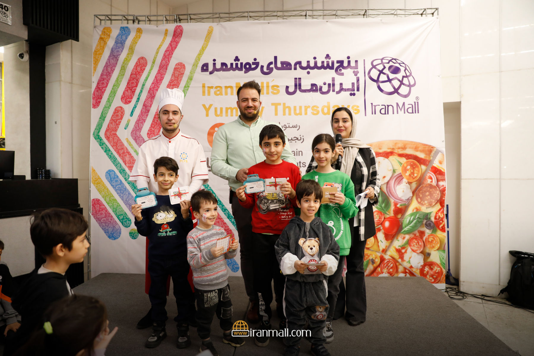 به گزارش روابط عمومی ایرانمال در این جشنواره که پنج شنبه پنجم بهمن ۱۴۰۲ برگزار شد، نوجوانان شرکت کننده تحت نظر اساتید آشپزی انواع مختلفی از پیتزاها را طراحی کردند و پختند. در پایان این رقابت شاد هیئت داوران بهترین پیتزاها را معرفی کردند و گروههای برتر جایزه گرفتند. گروه پنج نفره امیر رضا برومند، آرنیکا بنایی، هدیه روشنایی مقدم، هاکان محمودی، سامیار سماواتی در این رقابت به مقام نخست رسیدند. مشاوره به خانواده ها در زمینه غذا و سلامت کودکان، برنامه جنبیِ پنج شنبه خوشمزه بود.
