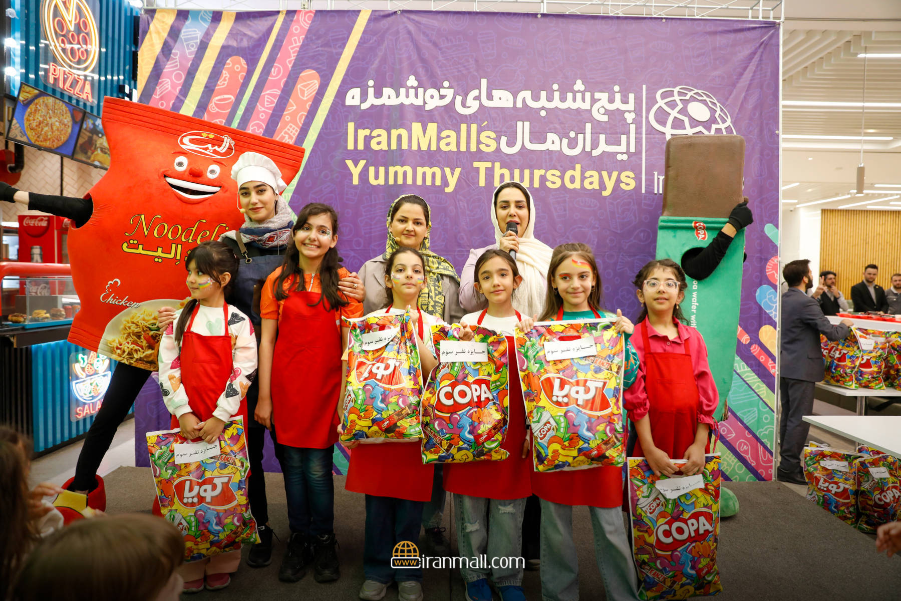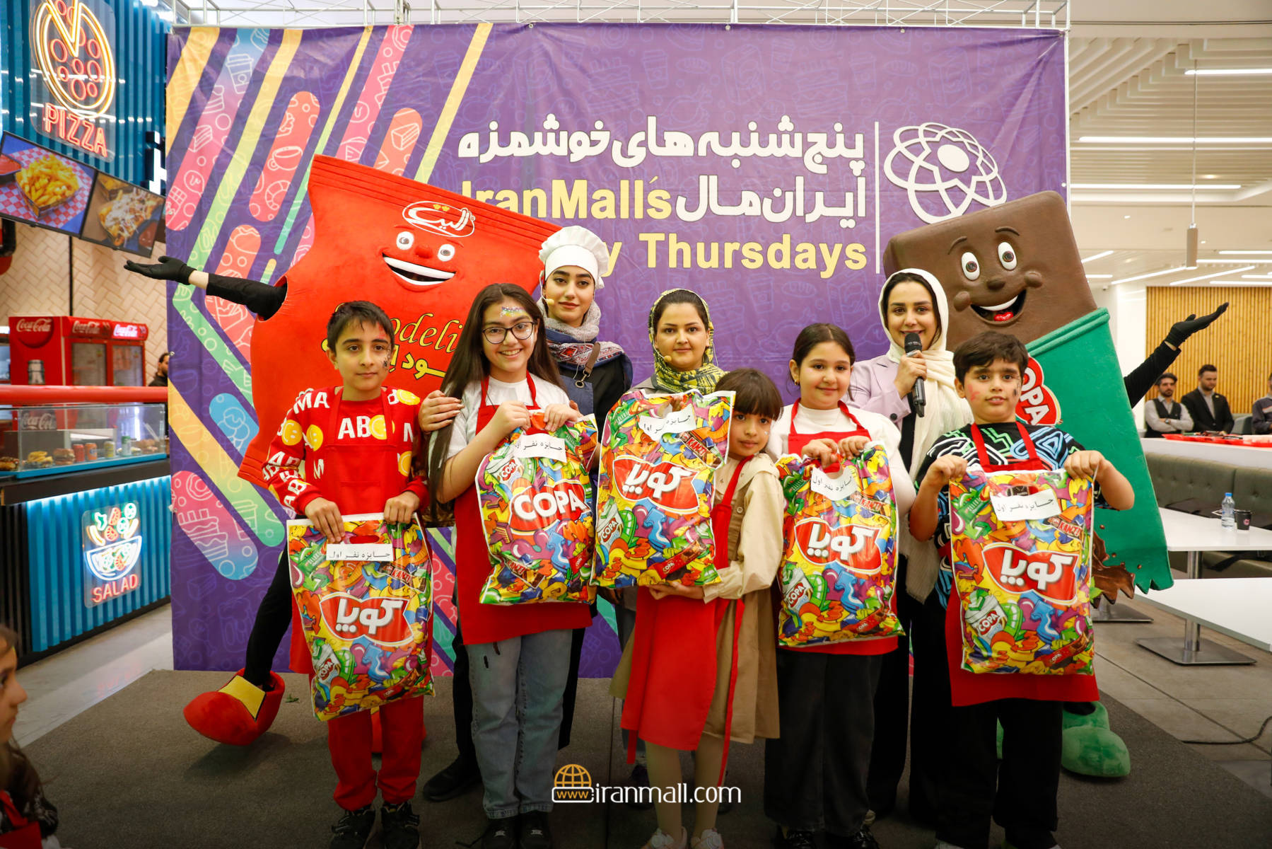 به گزارش روابط عمومی ایرانمال در این جشنواره که با حضور حدود صد نوجوان و خانوادههای آنان برگزار شد، حاضران در مسابقه تزئین و پخت پیتزا شرکت کردند و نفرات برتر معرفی شدند و جوایز خود را که به همت برندهای الیت و کوپا تهیه شده بود، دریافت کردند. در این رقابت گروه پنج نفره آریا محمدی، ساینا مهدی پور، آراد سلطانی، باران نجاران و رز علیزاده به مقام نخست دست یافتند. جشنواره خوشمزههای پنج شنبه ۱۳ اردیبهشت با ایام پاسداشت مقام معلم همزمان بود و در آن از مقام آموزگاران تجلیل و قدردانی شد.