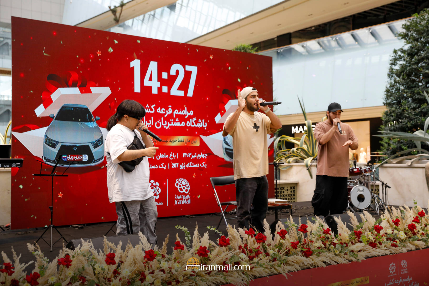 در این مراسم که با استقبال گسترده اعضای باشگاه مشتریان ایران‌مال روبروشد دو دستگاه خودرو ۲۰۷ و دناپلاس در میان شور و هیجان حاضران قرعه‌کشی شد و صاحبان خود را شناخت. اولین برنده خوش شانس این جشنواره آقای حمید زرکشان بود که برنده خودرو پژو ۲۰۷ شد. در بخش دوم قرعه کشی نیز خانم سپیده خزایی برنده خوش شانس بعدی لقب گرفت و خودرو دناپلاس این مراسم را متعلق به خود کرد. قرعه کشی خودرو بین مشتریانی برگزار شد که پیشتر با خرید حداقل پانصد تومان از فروشگاههای این مجموعه فاکتورشان را در کانترهای باشگاه مشتریان در سطح این مجموعه ثبت کرده بودند.